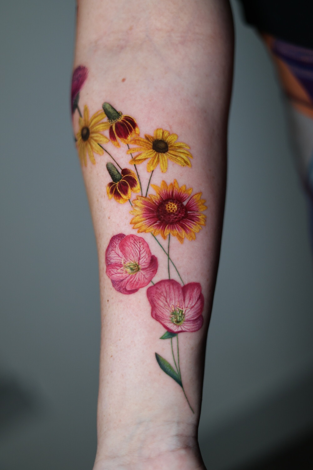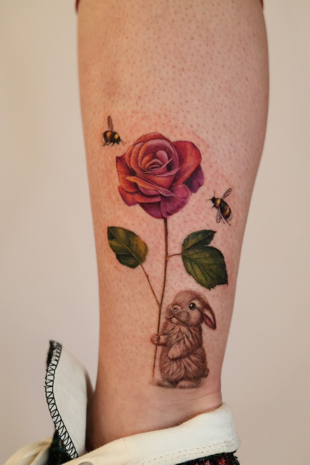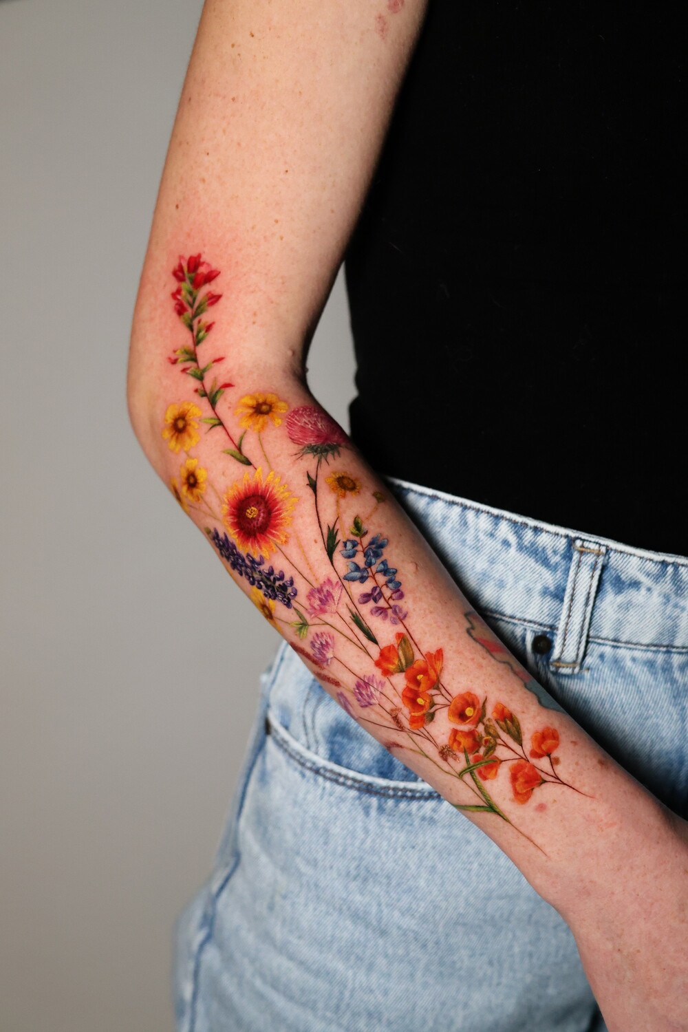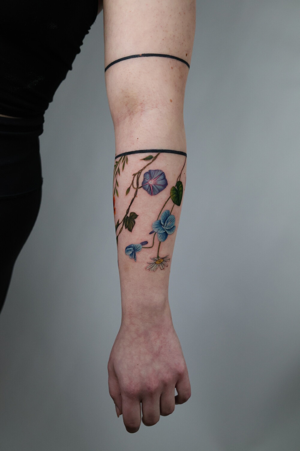 Her style sits at the intersection of botanical art and painting, with color compositions inspired by oil painting techniques. Plants and flowers form the core of her work, often complemented by birds, animals, insects, and pet portraits, giving her tattoos a sense of living, breathing nature.