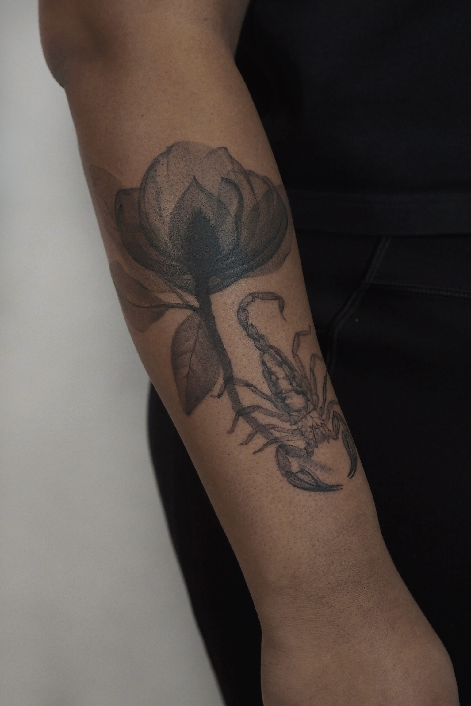 For many years, Anastasia worked primarily with botanical tattooing, which later became the foundation of her current style. A few years ago, however, her approach shifted fundamentally when she happened to see X-ray images of real flowers. That moment sparked the idea of introducing X-ray aesthetics into tattooing.