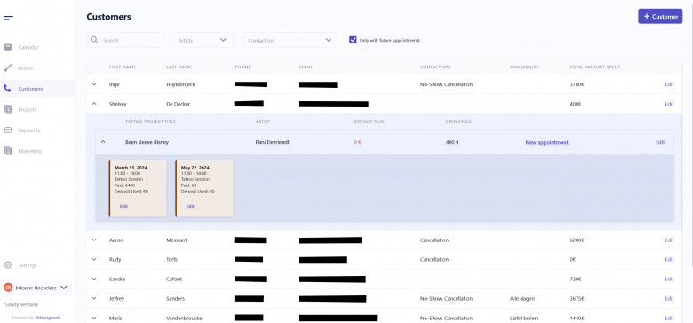 Client Management: Centralizing client information and history, Tattoogenda enables studios to personalize interactions, anticipate client needs, and foster long-term loyalty.