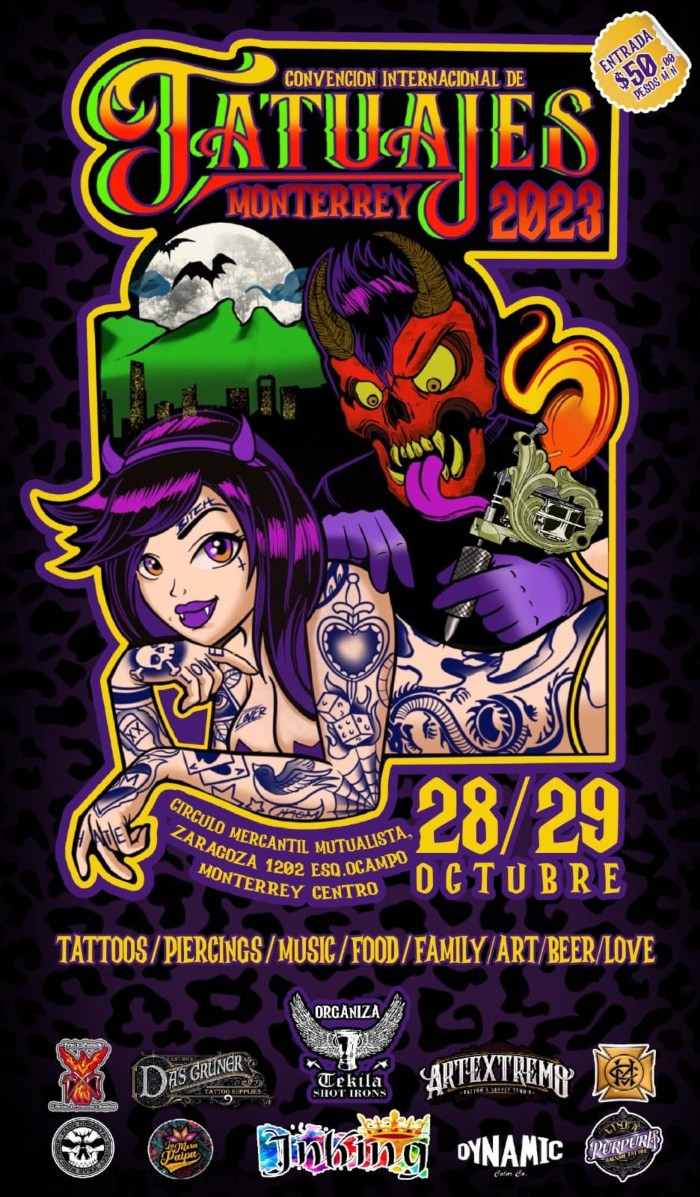 Monterrey, Nuevo León, Tekila Shot Irons presenta la Convención de Tatuajes Monterrey 2023 la única convención en América con un concurso de fabricantes, la cual se llevará acabo del 28 al 29 de Octubre de 2023.