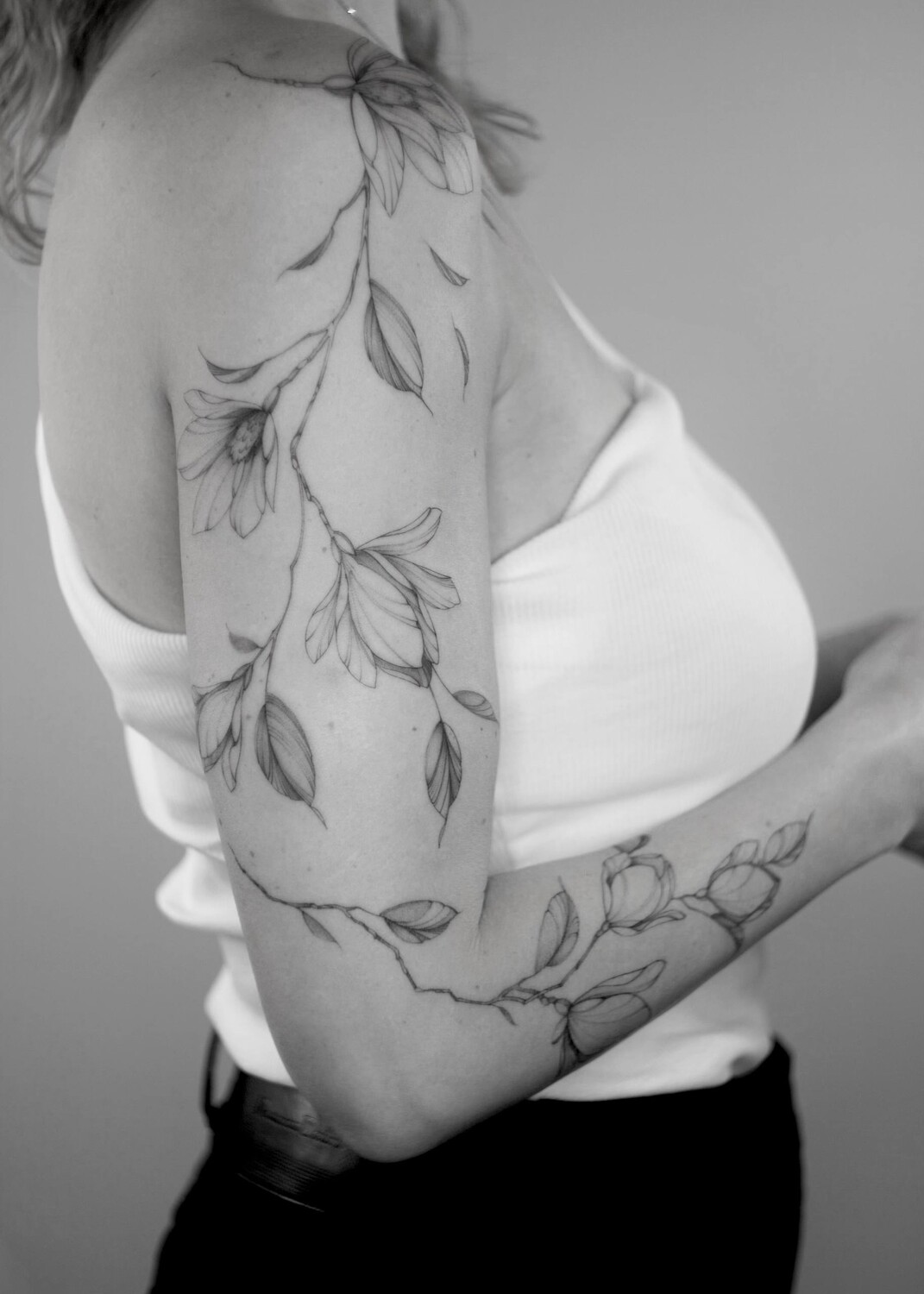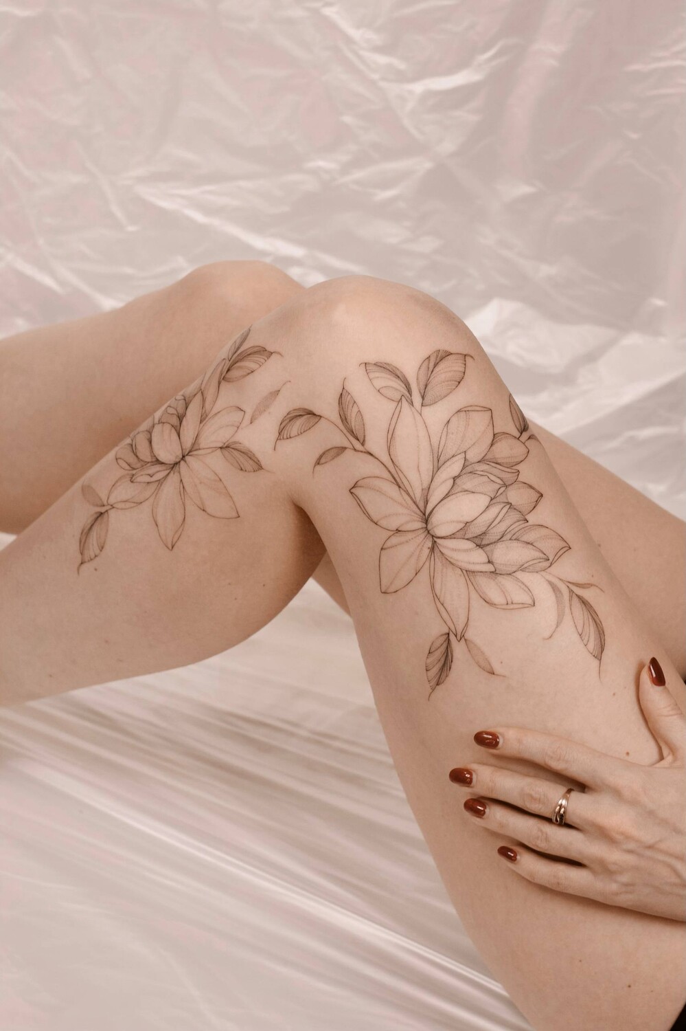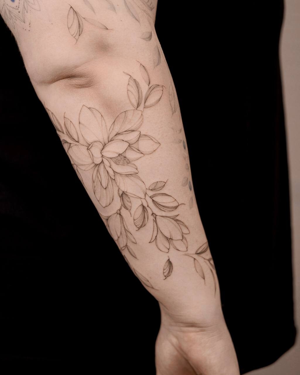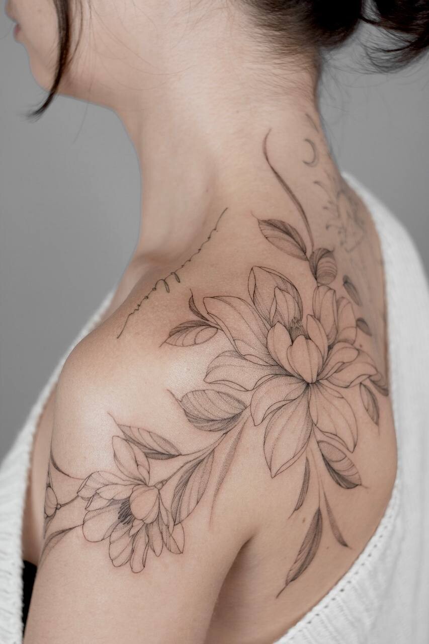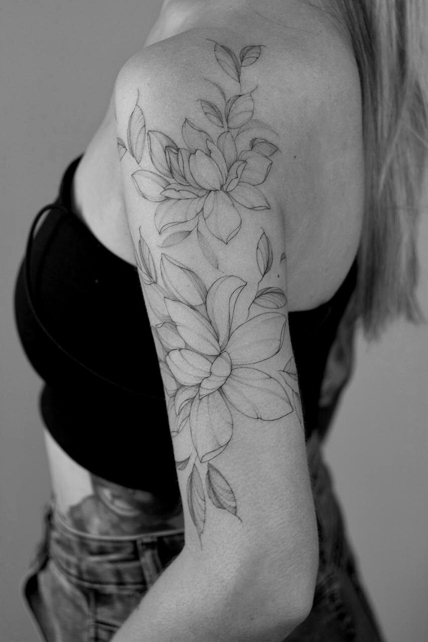 Анастасия Ковязина сертифицированный мастер с международным опытом, её работы можно увидеть на девушках по всему миру, от Европы до Америки. Она работает в стиле тонкой графики, создавая изящные ботанические мотивы, утончённые орнаменты и цветочные композиции с нежными тенями и воздушными линиями.