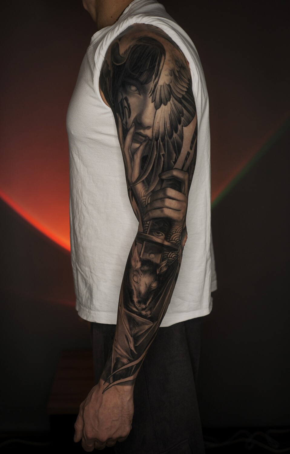 Я приехал с другого города и было ограниченное количество дней , мастер уложился в 4 дня . Мы сделали полноценный рукав и абсолютно без потери качества. Понравилось серьезное отношение к своему делу и деталям работы, сидели с самого утра и до поздна все эти дни .