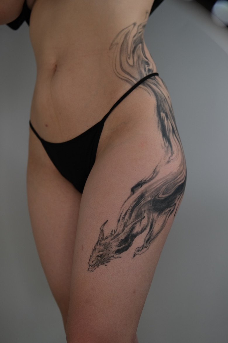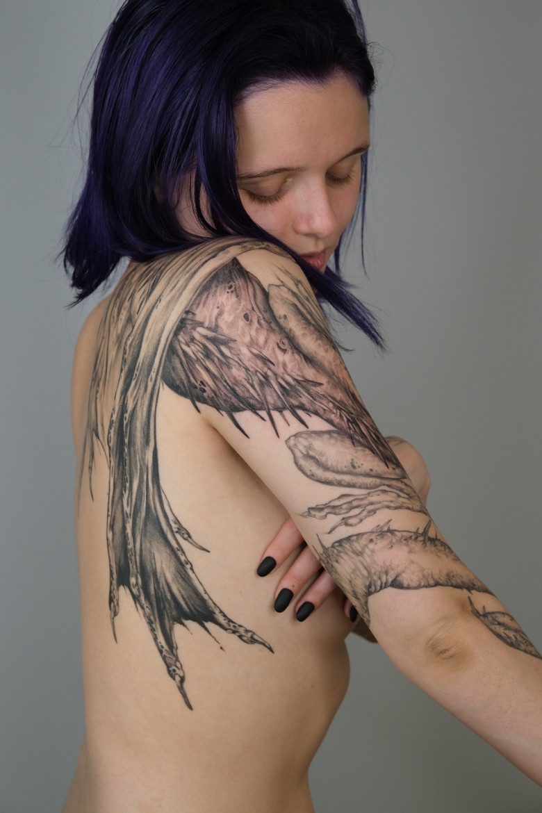 - Sono semplicemente curiosa, voglio affrontare tutto. Sembrerebbe che morirò di noia se faccio sempre la stessa cosa 24 ore su 24. Prima ero molto delusa perché non riuscivo a trovare il tempo per questa “ricerca”, pensavo che non fosse “autentica”. Ma un giorno, quando ho ricevuto un tatuaggio da Tanya @yorayart, ho ricevuto una buona consigli: “Fai la pace! I clienti decideranno cosa farai successivamente, basta solo che sia ben fatto.” Così mi sono rilassata e mi sono concentrata sulla qualità. Di recente mi piace lavorare con astrazioni, creature mitologiche grandi, mi rilasso su di esse e spesso lavoro molto più velocemente. In effetti, lo stesso tempo può essere dedicato a un'astrazione su tutta la coscia e a un piccolo disegno pieno di dettagli.