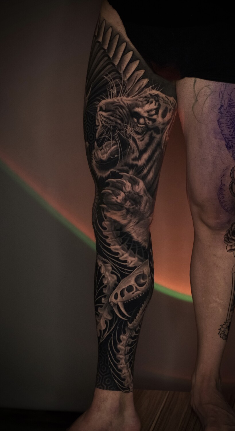 Была у Алексея пару месяцев назад и сначала шла за небольшим изображением кошки на руке, как итог решили делать рукав . Спасибо мастеру за его грамотность и индивидуальный подход. Очень рада попасть именно к нему, качественно и настолько детально каждая мелочь, что думаю на одной руке не остановлюсь.