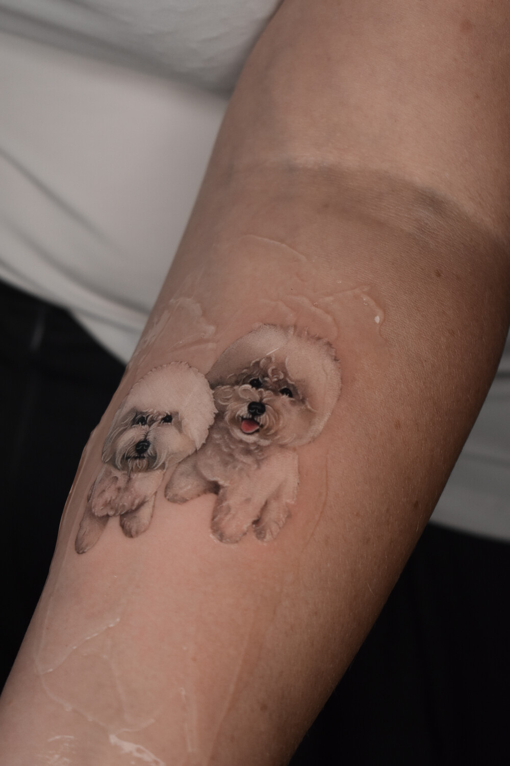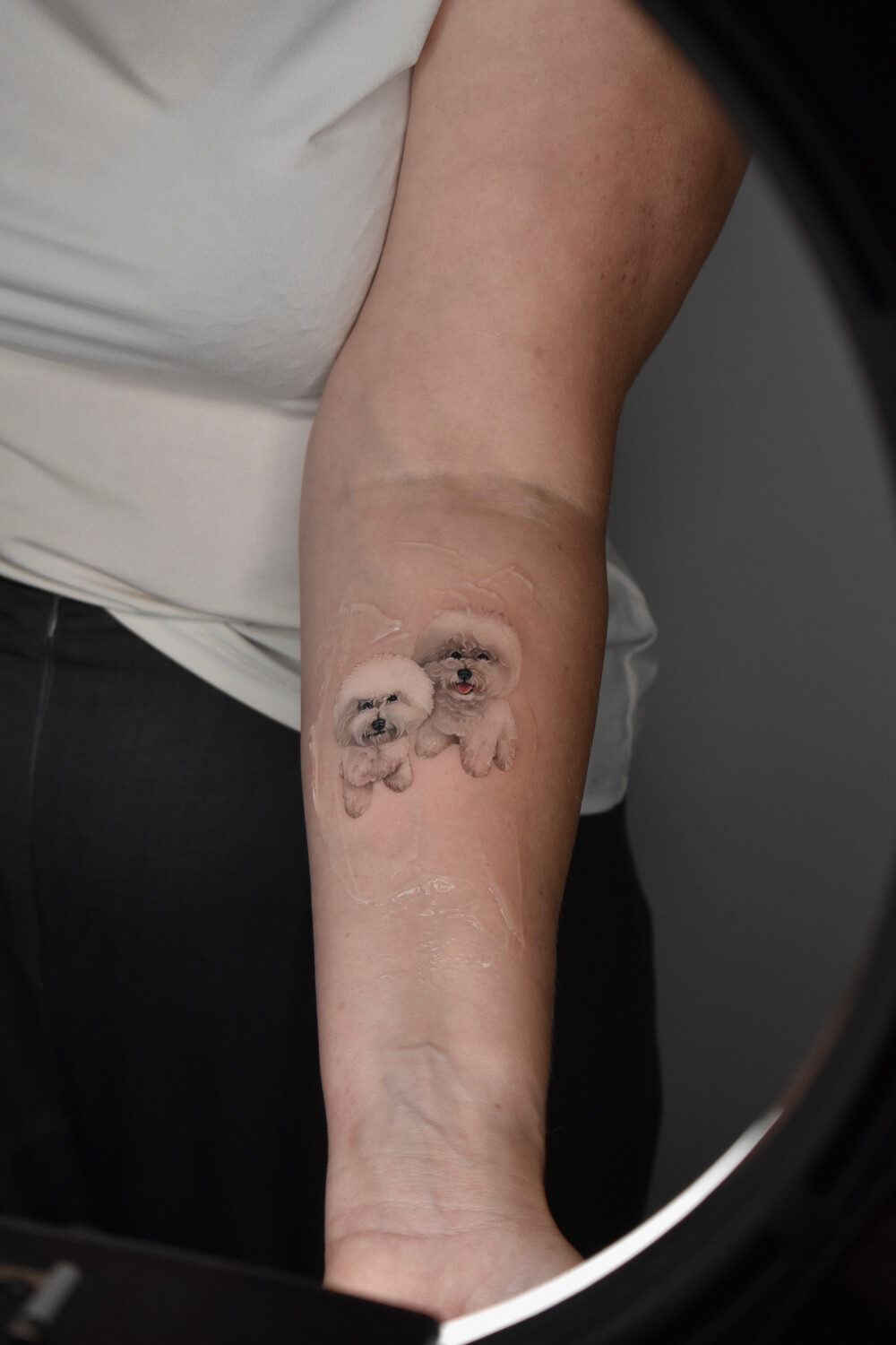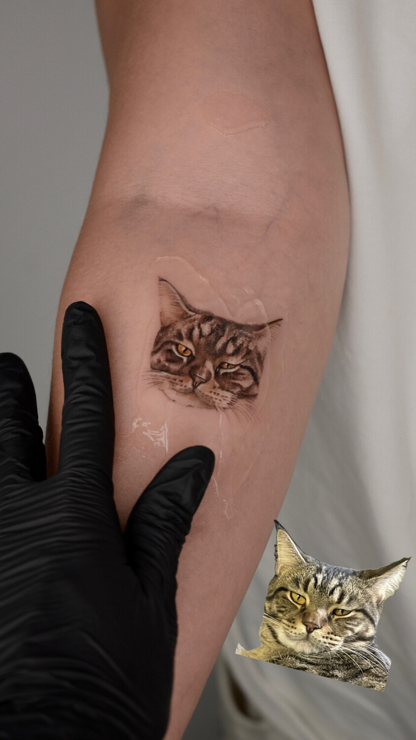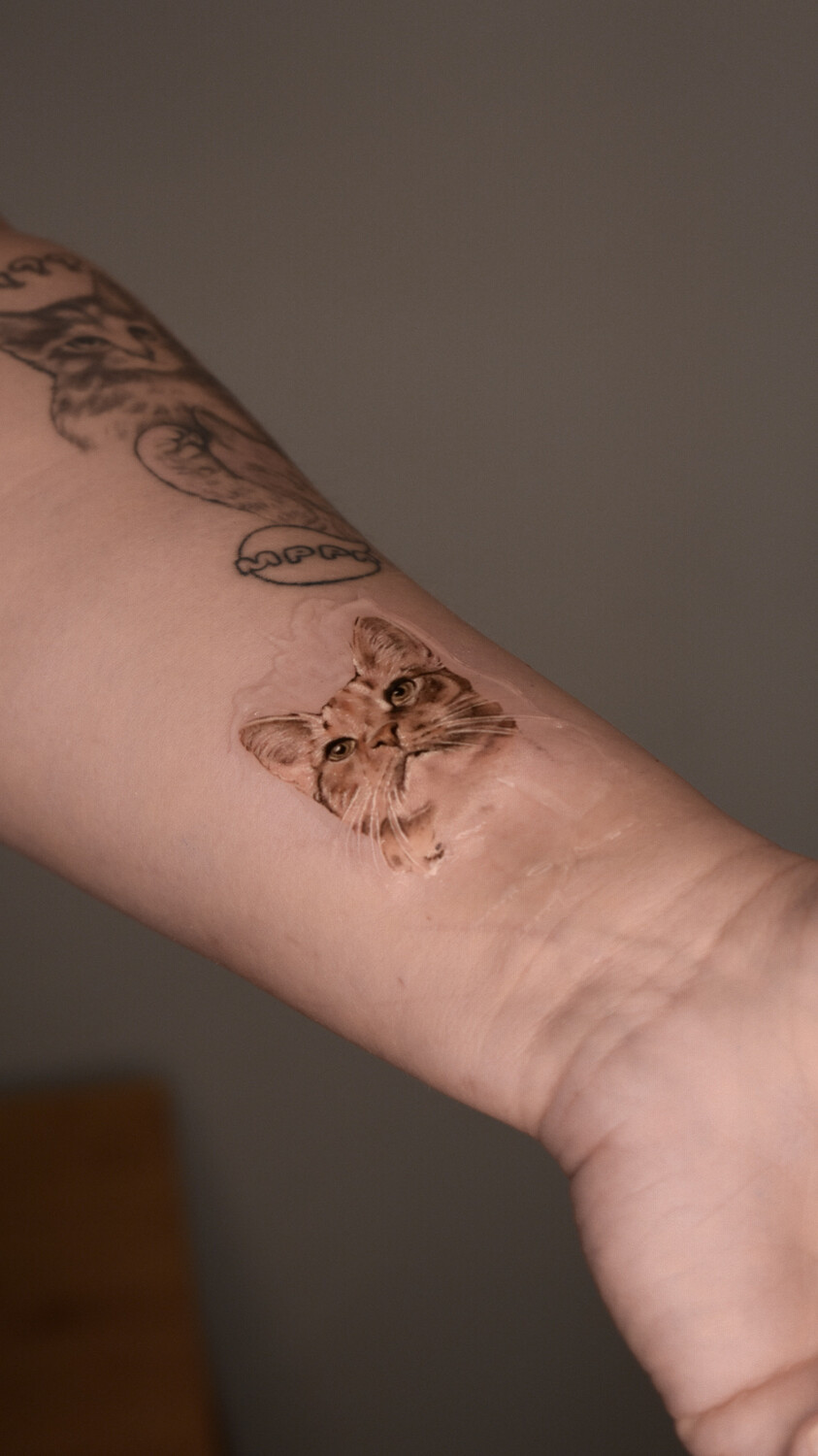 Мне всегда хотелось сделать тату своих любимых пушистиков, но те примеры что я находила в интернете мне не нравились. Для меня было важно запечатлеть на своём теле именно моих животных, с их определенными особенностями и отличиями, а не просто похожую породу. На профиль Кати я наткнулась случайно, но сразу поняла что она именно тот мастер которому я могу довериться. И вот наконец она сделала мне тату. Это действительно очень сложная и филигранная работа! Катя потрясающий художник! Теперь я каждый день любуюсь на моих девочек, и они останутся со мной навсегда🙏🏻 Благодарю от всей души❤️