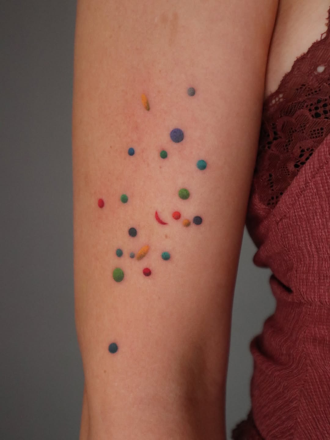 Macarena,也被称为 Maca 或 Blekanddots,是一位来自智利的纹身艺术家,目前在圣地亚哥工作。她的风格建立在抽象、图形思维和对色彩细腻的绘画手法的结合之上。通过几何形状、柔和的色调过渡和色彩,她创作的纹身无论是作为图像还是作为融入身体的形态,都显得构思精巧。