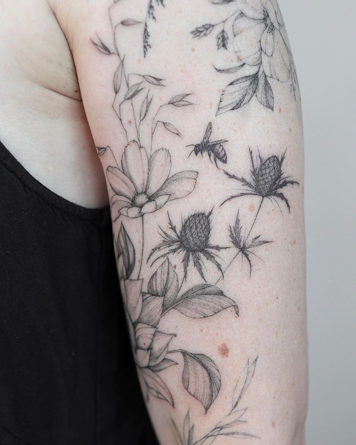 Sofia 专注于花卉细线 tattoo,她采用大胆的自由手绘技法。这种技法无需模板,直接在皮肤上创作设计,使图案有机地融入身体,让每一件 tattoo 都真正独一无二。