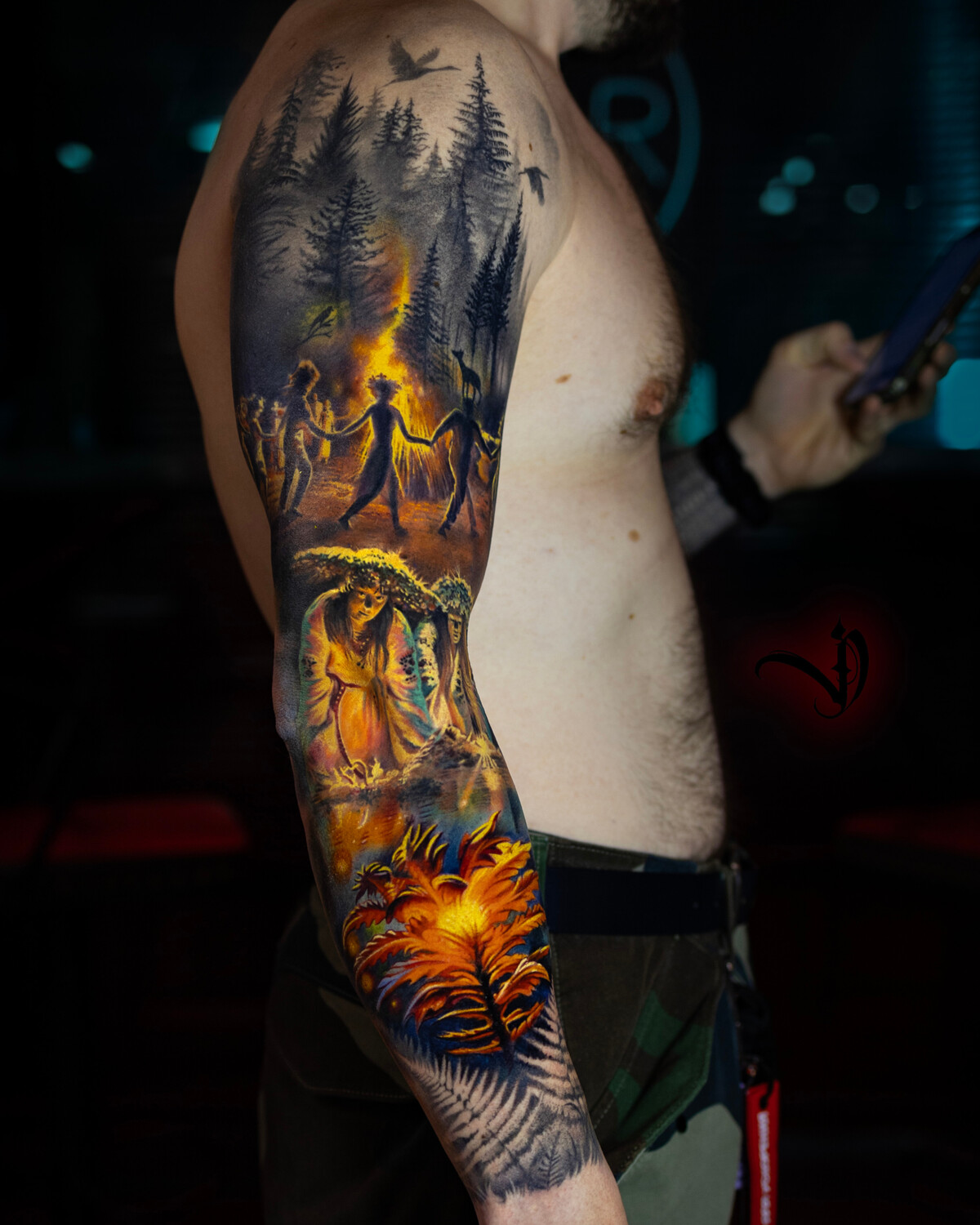 Бил рукав у Дмитрия и ни разу не пожалел о своем выборе. При создании эскиза полностью доверился, никаких разногласий у нас не было, эскиз меня устроил на все сто! Детализация сумасшедшая и, даже несмотря на то, что рука у меня довольно худая, все мелкие детали читаемы. Спустя месяц после окончания работ не вижу ни одного изъяна - все прокрашено, каждая линия завершена, цвета сочнейшие) Отдельное спасибо за бешеную скорость прокраса - я не успевал устать настолько, чтобы пустить слезу)