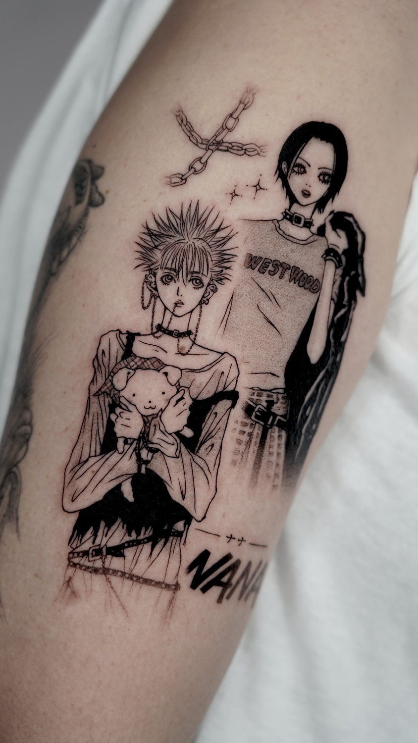 Помимо масштабных проектов, мне также очень понравилось работать над татуировками, вдохновлёнными Nana и Jujutsu Kaisen. Эти проекты были для меня очень захватывающими и определённо входят в число моих любимых.
