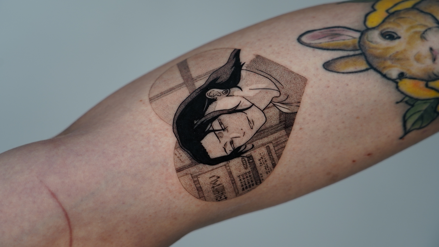 Nitzan: Я считаю, что работа с цветом — это красиво, и у меня самой есть много цветных татуировок. Но когда речь идёт о моих собственных работах, меня особенно привлекает техника теней, потому что она очень близка к текстурам манги. Когда мангу адаптируют в аниме и добавляют цвет, оригинальная штриховка часто исчезает и заменяется плоской цветной анимацией.