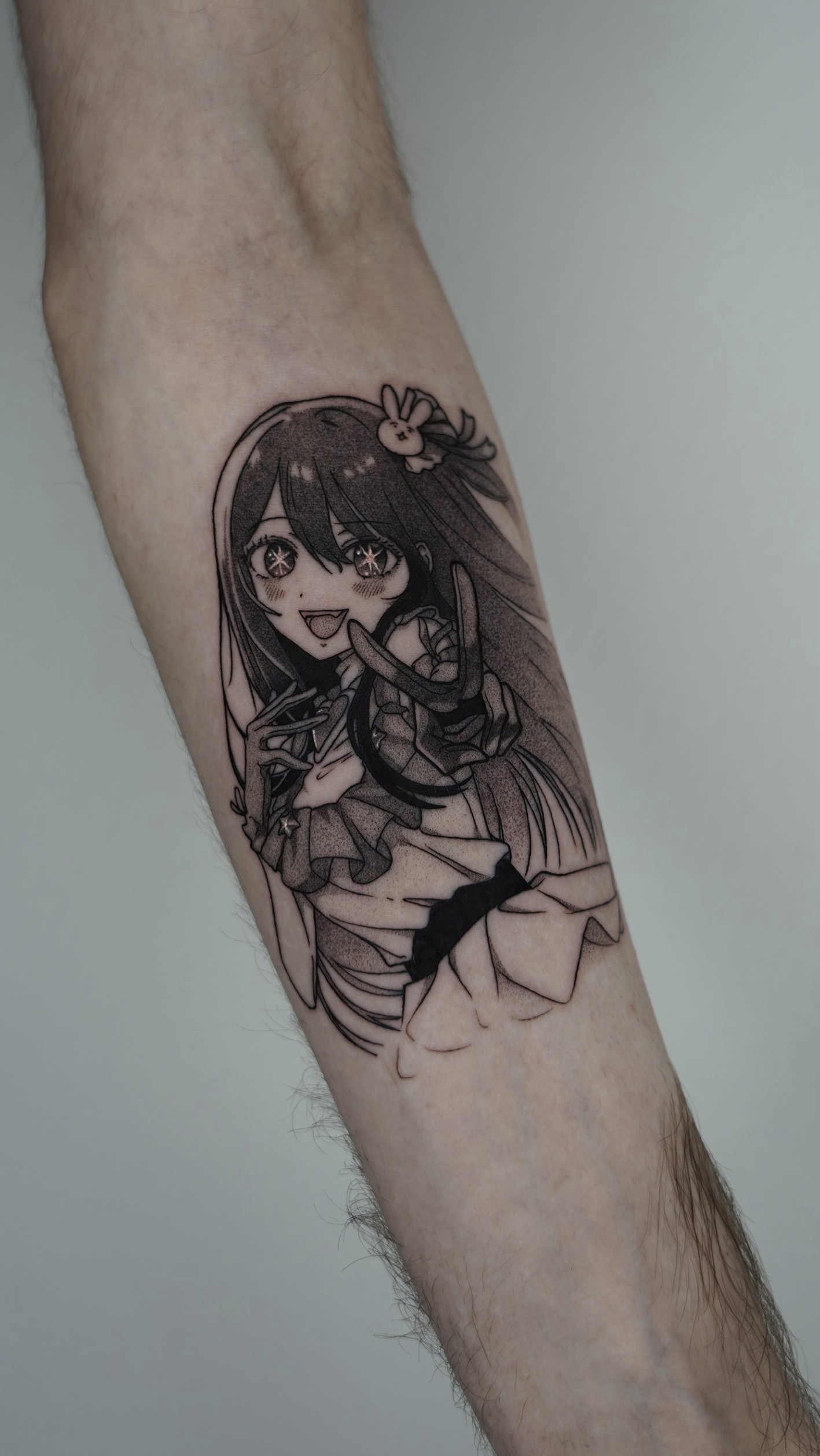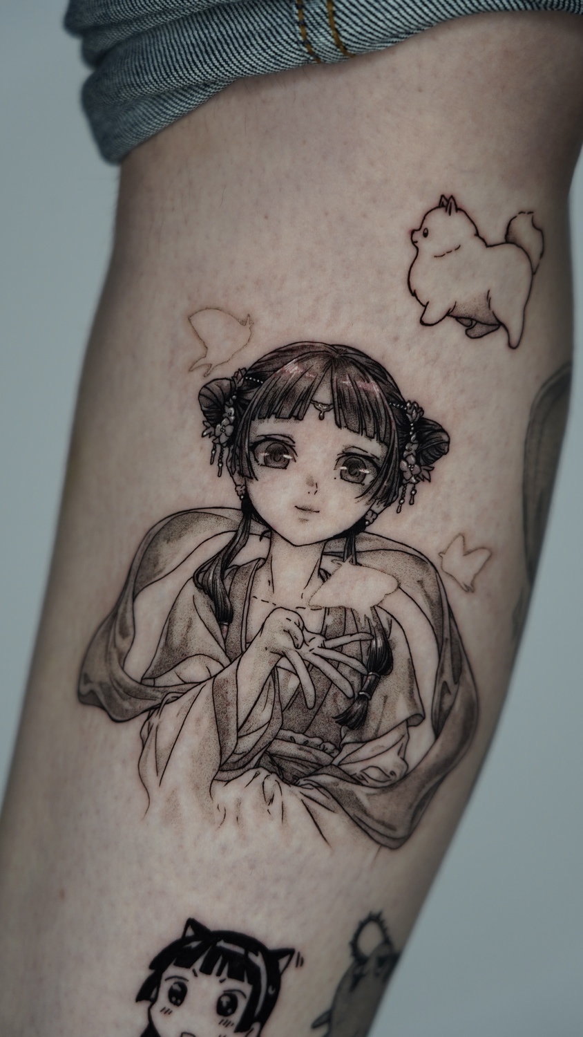 Когда я начала заниматься татуировкой, ещё во время обучения, я уже практиковала рисунки аниме-персонажей и эскизы, основанные на аниме. Я не видела много тату-мастеров, которым действительно удавалось передать красоту аниме и манги и перевести её в формат татуировки. Это и стало моей мотивацией — дать клиентам возможность татуировать любимых персонажей и сцены так, чтобы уважать оригинальное произведение и при этом передавать эмоции, глубину и уникальность каждой манги или аниме.