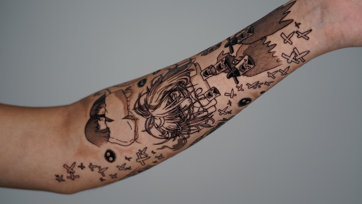Ещё один тип татуировок, который я всегда делаю с удовольствием, — это работы, вдохновлённые фильмами Studio Ghibli. Я люблю и восхищаюсь их творчеством с детства. Их анимация невероятно красива, а фильмы всегда несут глубокие и эмоциональные смыслы. Я всегда рада создавать татуировки по мотивам работ Ghibli.