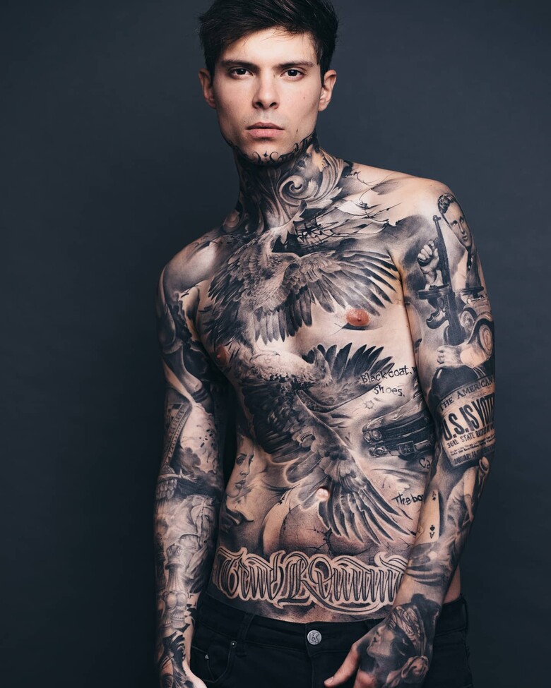 — Меня зовут Jonathan MARTIN, мне 33 года, я француз. Сейчас живу в регионе Женевы в Швейцарии, работаю моделью и известен тем, что у меня много татуировок.